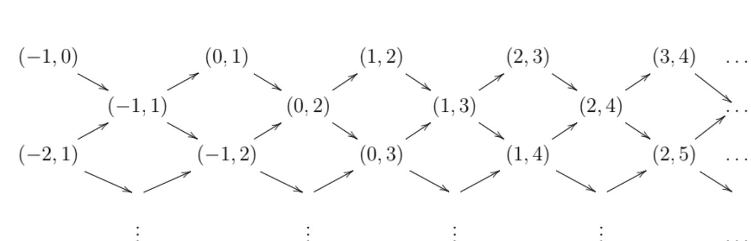 An infinite (right) half-frieze is a set of positive integers $m_{(a,b)}$ with $0 \leq a \leq b$ which satisfies the following rules: