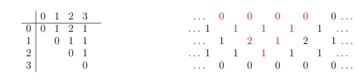 Note. Mutating at a single arc changes the triangulation and the sequence locally. It changes the whole frieze.