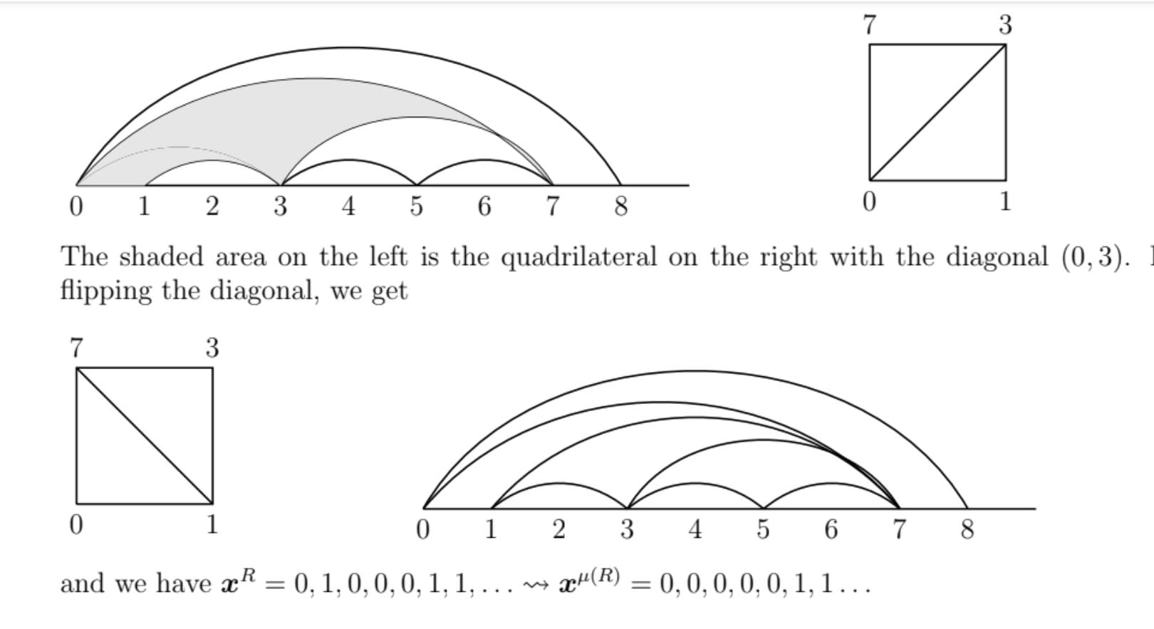 For an integer $n \geq 1$ \[ \boldsymbol{x}_n^R = \boldsymbol{x}_{n+1}^R = 1 \iff \boldsymbol{y}_{n+1}^R - \boldsymbol{y}_n^R = 1 \] which is equivalent to saying that $(\boldsymbol{y}^R_n, \boldsymbol{y}^R_{n+1})$ is a boundary arc.